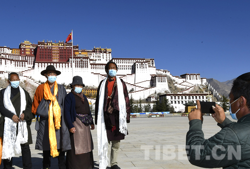 圖為2022年12月初,拉薩市各旅游景點恢復(fù)開放,游客在布達拉宮廣場拍照留念 攝影:王媛媛