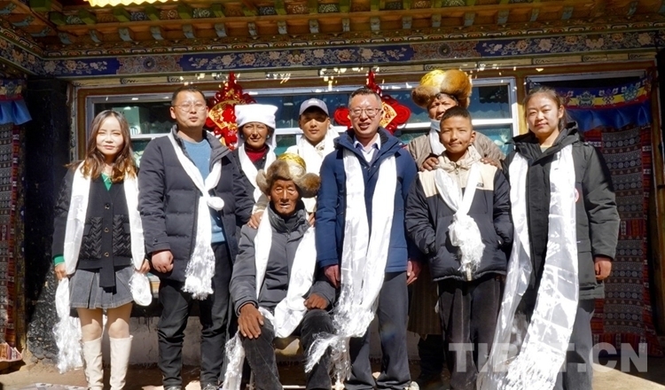 圖為多章家人與春節(jié)期間堅守崗位的春堆鄉(xiāng)政府工作人員、駐村工作人員的合影攝影:次旦拉姆