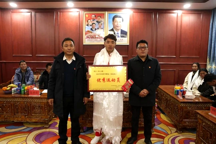 中國西藏網(wǎng)訊 近日,西藏自治區(qū)那曲市比如縣在夏曲鎮(zhèn)舉行歡迎越野滑雪國家運(yùn)動(dòng)員次仁占堆榮歸故鄉(xiāng)座談會(huì)。家鄉(xiāng)父老鄉(xiāng)親向次仁占堆回到家鄉(xiāng)表示熱烈歡迎,向其頒授“2023年度榮譽(yù)禮贊(國家級(jí))優(yōu)秀運(yùn)動(dòng)員”榮譽(yù)牌。
