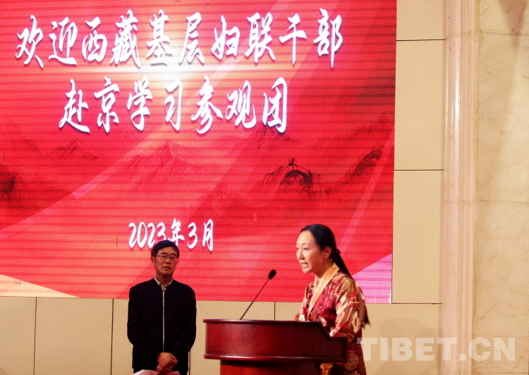 圖為西藏自治區(qū)婦聯(lián)黨組成員、副主席澤仁卓嘎(右一)在北京建藏援藏工作者協(xié)會在北京西藏大廈為“2023年西藏基層婦聯(lián)干部赴京學(xué)習參觀團”成員們舉行的歡迎會上發(fā)言 攝影:劉莉