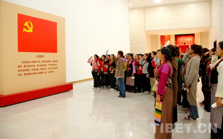 圖為“2023年西藏基層婦聯(lián)干部赴京學(xué)習參觀團”成員們在中國共產(chǎn)黨歷史展覽館重溫入黨誓詞 攝影:劉莉