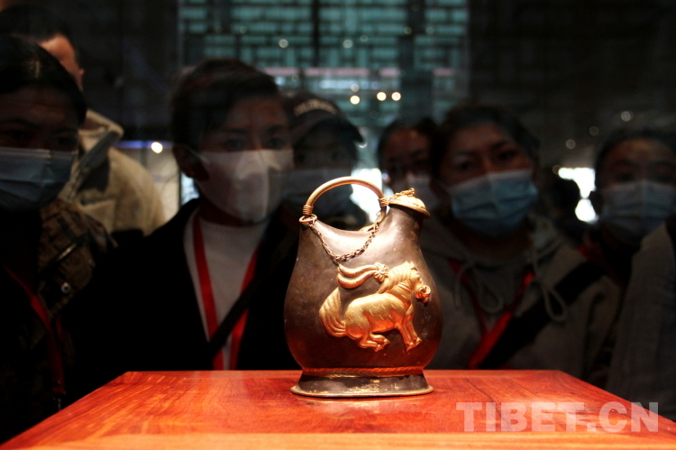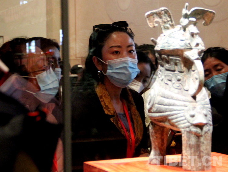 圖為2023年西藏基層婦聯(lián)干部赴京學(xué)習參觀團成員們在中國工藝美術(shù)館·中國非物質(zhì)文化遺產(chǎn)館內(nèi)欣賞唐代文物鎏金舞馬銜杯紋銀壺的復(fù)制件 攝影:劉莉