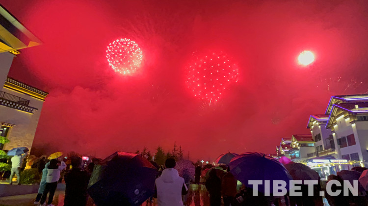 圖為2023西藏林芝桃花旅游文化節(jié)開幕式當(dāng)晚的煙火表演 攝影:王茜