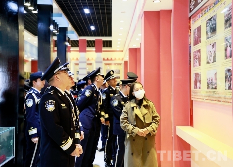 圖為邊巴邊境派出所組織民警前往駐地紅色教育基地參觀新舊西藏對比展覽 攝影:曾勇