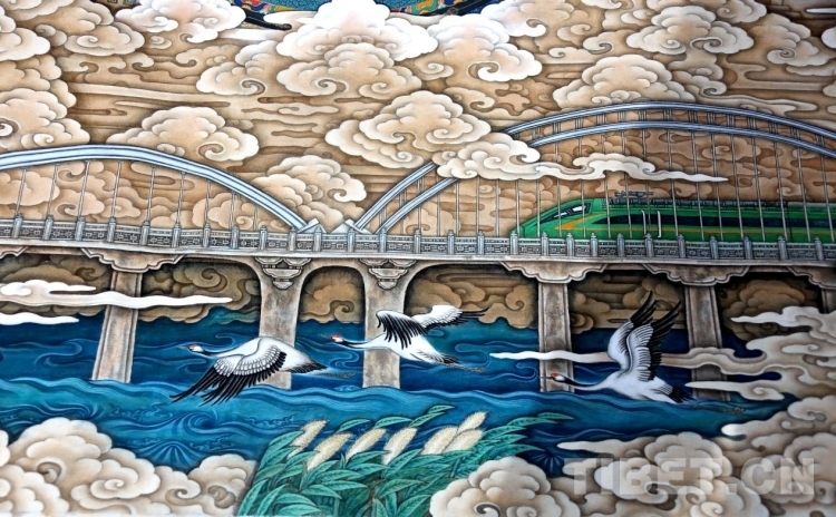 據(jù)介紹,自西藏和平解放以來,在黨和國(guó)家的政策扶持下,西藏的唐卡藝術(shù)得到了很好的傳承和發(fā)展,傳統(tǒng)唐卡的五大畫派在各自的創(chuàng)作領(lǐng)域都有很高的藝術(shù)成就,但是傳統(tǒng)唐卡的各大畫派集中創(chuàng)作的形式從未有過,用傳統(tǒng)唐卡描繪新西藏的盛世圖景更是空白。迫切地需要西藏本土的美術(shù)工作者擔(dān)起文化使命感,用民族美術(shù)的載體歌頌偉大的中華民族、歌頌我們所處的美好時(shí)代、歌頌來之不易的美好生活。大型唐卡壁畫《高原明珠》應(yīng)運(yùn)而生。