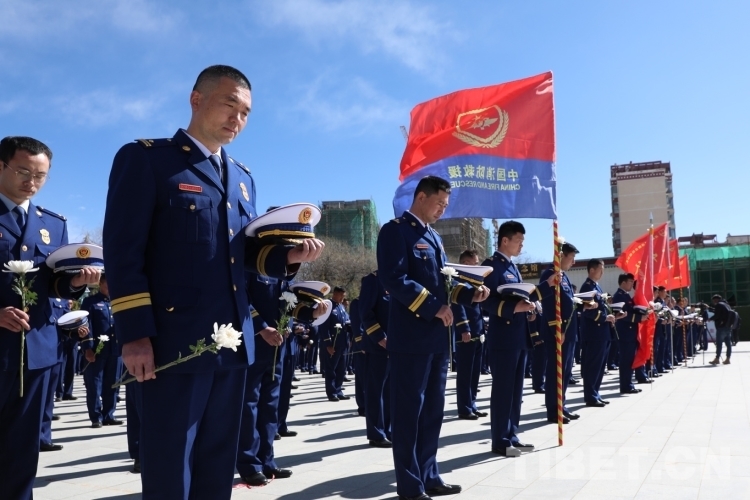 圖為西藏森林消防總隊代表們集體默哀致敬