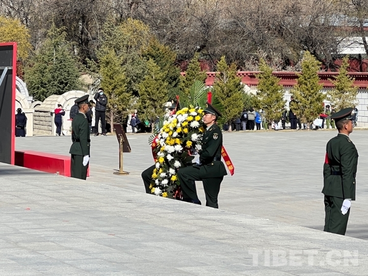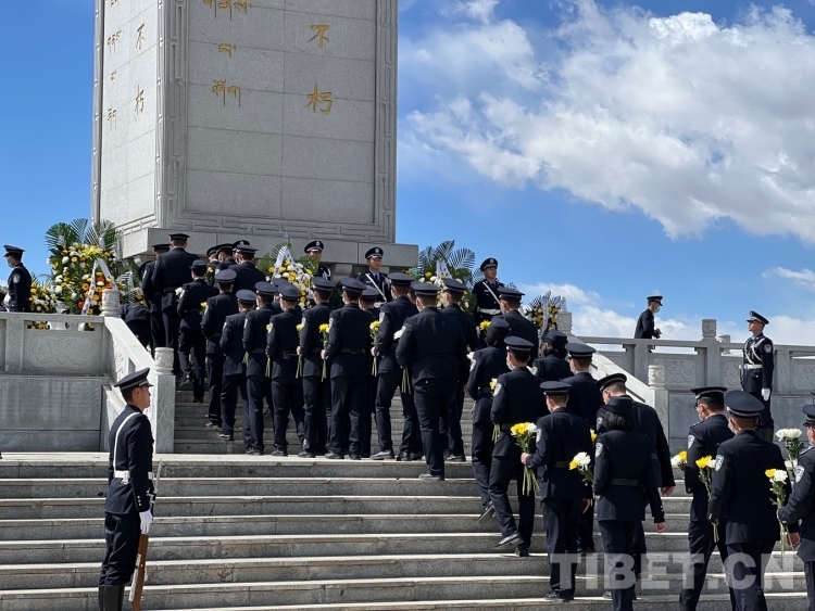 圖為軍警代表向革命先烈敬獻鮮花 攝影:德吉卓瑪