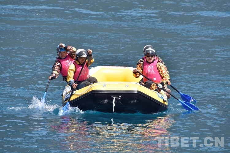 15日上午10時(shí)許,來(lái)自北京、云南、四川、上海及西藏等地的25支隊(duì)伍,在國(guó)家5A級(jí)生態(tài)自然旅游景區(qū)巴松錯(cuò)參加了靜水雙人艇競(jìng)速賽,靜水漂流筏排位賽。比賽現(xiàn)場(chǎng),選手們?cè)缭绲貋?lái)到了比賽場(chǎng)地?zé)嵘砗蜏?zhǔn)備,要在比賽中一展身手,取得好成績(jī)。比賽中,參賽選手按時(shí)間間隔順序出發(fā),并展開(kāi)了激烈角逐,你追我趕的激烈場(chǎng)面吸引了眾多游客和市民的目光,助威聲此起彼伏,讓賽場(chǎng)上的選手們更加精神抖擻、士氣高昂。