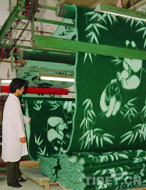 這是原西藏林芝毛紡廠工人正在生產(chǎn)“高原牌”毛毯(唐召明1991年攝)