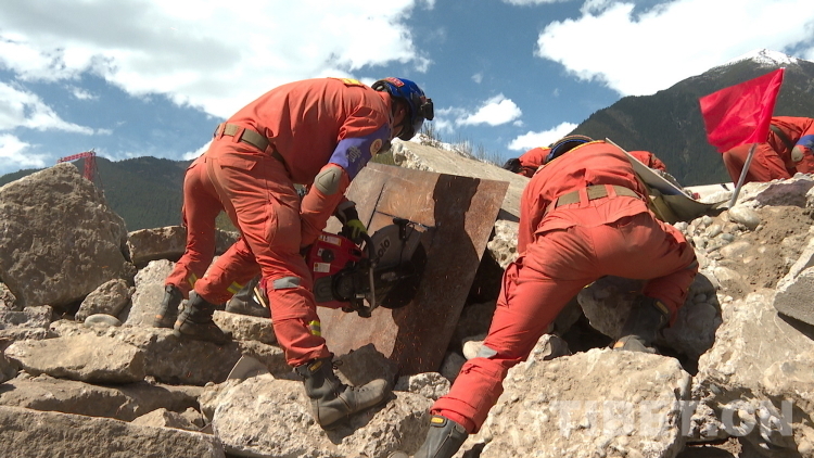 圖為林芝市森林消防支隊救援人員在“應急使命·西藏2023”抗震救災實戰(zhàn)化演習中實施狹小空間救援。