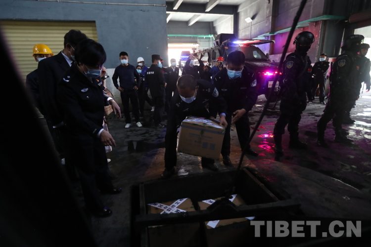 活動啟動后,貼有封條的50箱毒品被公安廳反恐特偵總隊公安民警和禁毒總隊民警裝運至曲水縣危廢處置中心采用無公害化技術(shù)焚燒銷毀。