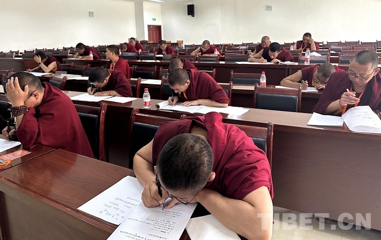 圖為中國藏語系高級(jí)佛學(xué)院2023年“拓然巴”高級(jí)學(xué)銜班招生考試(西藏)考點(diǎn)的筆試現(xiàn)場