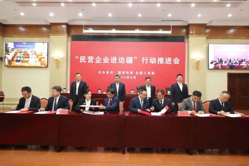會議指出,“民營企業(yè)進邊疆”行動是國家民委、全國工商聯(lián)以習近平新時代中國特色社會主義思想為指導,深入貫徹落實黨的二十大精神和習近平總書記關(guān)于加強和改進民族工作的重要思想、關(guān)于民營經(jīng)濟發(fā)展的重要論述精神,動員引導廣大民營企業(yè)積極參與邊疆地區(qū)建設(shè)的重要舉措。要認真貫徹落實黨中央關(guān)于“加強邊疆地區(qū)建設(shè),推進興邊富民、穩(wěn)邊固邊”重大決策部署,深入貫徹落實習近平總書記近日在內(nèi)蒙古考察時所作重要講話精神,堅持以鑄牢中華民族共同體意識為主線,站在強國建設(shè)、民族復興的戰(zhàn)略高度加強邊疆地區(qū)建設(shè),扎實推動“民營企業(yè)進邊疆”行動,助力邊疆民族地區(qū)高質(zhì)量發(fā)展,讓各族人民實實在在感受到推進共同富裕在行動、在身邊。