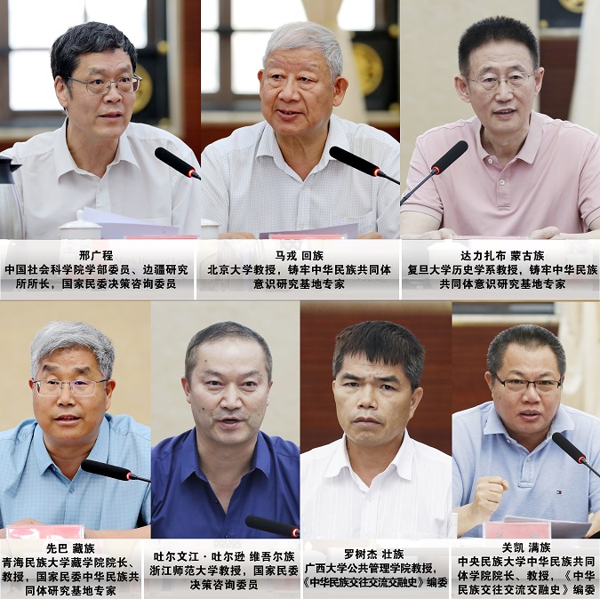 中國(guó)社會(huì)科學(xué)院學(xué)部委員邢廣程、北京大學(xué)教授馬戎(回族)、復(fù)旦大學(xué)教授達(dá)力扎布(蒙古族)、青海民族大學(xué)教授先巴(藏族)、浙江師范大學(xué)教授吐?tīng)栁慕ね聽(tīng)栠d(維吾爾族)、廣西大學(xué)教授羅樹杰(壯族)、中央民族大學(xué)教授關(guān)凱(滿族)等7位學(xué)者發(fā)言,就中華文明五大特性與鑄牢中華民族共同體意識(shí)、在實(shí)事求是基礎(chǔ)上堅(jiān)定中華民族的文化自信、中華文明的統(tǒng)一性與包容性、青藏高原是中國(guó)古代文化“場(chǎng)”中重要區(qū)域之一、建設(shè)中華民族現(xiàn)代文明與中華民族共同體是文化潤(rùn)疆的重要方向、壯族文化的形成發(fā)展是中華文明五大特性的生動(dòng)體現(xiàn)、中華民族現(xiàn)代文明與中華民族共同體建設(shè)等多方面暢談學(xué)習(xí)體會(huì)。大家一致認(rèn)為,習(xí)近平總書記在文化傳承發(fā)展座談會(huì)上發(fā)表的重要講話,闡明了中華文明的突出特性,揭示了“兩個(gè)結(jié)合”的深刻內(nèi)涵,強(qiáng)調(diào)了建設(shè)中華民族現(xiàn)代文明的重要原則。中華文化是各民族優(yōu)秀文化的集大成,各民族共同創(chuàng)造了偉大悠久的中華文明,中華文明的突出特性在各民族文化中都有體現(xiàn),國(guó)土不可分、國(guó)家不可亂、民族不可散、文明不可斷是所有中華民族成員的共同信念。大家一致表示,要以習(xí)近平總書記重要講話精神為引領(lǐng),牢牢把握中華文明的五大突出特性,深入開展理論創(chuàng)新,多出高質(zhì)量研究成果,為中華民族現(xiàn)代文明建設(shè)和中華民族共同體建設(shè)作出積極貢獻(xiàn)。