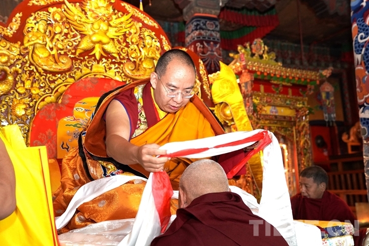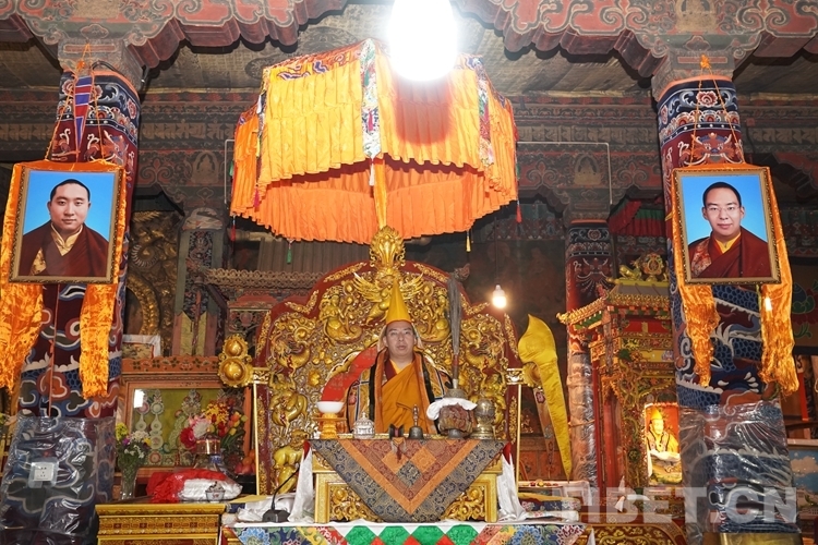隨后,班禪登上措欽大殿法座為僧眾解經(jīng)釋教、摸頂賜福。