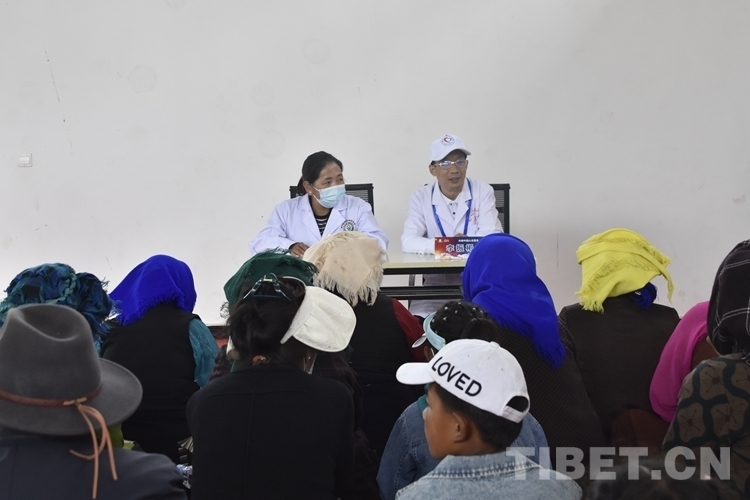 圖為7月8日,活動(dòng)現(xiàn)場開展了骨關(guān)節(jié)炎防治健康知識(shí)講座,鄉(xiāng)政府還安排了一名翻譯 攝影:次旦拉姆