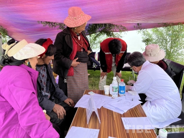圖為義診團專家代表進村入戶慰問困難群眾 攝影:德吉卓瑪
