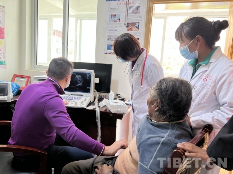北京上地醫(yī)院院長張宇為桑旦江措老人做胸部彩超檢查 攝影:德吉卓瑪