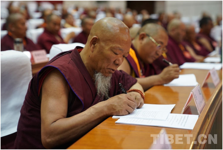 “加大‘導(dǎo)’的力度,深化‘三個意識’教育,要將開展‘三個意識’教育和常態(tài)化推進(jìn)‘四條標(biāo)準(zhǔn)’教育實(shí)踐活動有機(jī)銜接貫通起來。”班禪說,引導(dǎo)全體理事和寺廟僧尼樹牢國大于教、國法大于教規(guī)、教民首先是公民的普遍認(rèn)知,愛黨愛國愛人民,堅決維護(hù)祖國統(tǒng)一和民族團(tuán)結(jié);踐行社會主義核心價值觀,弘揚(yáng)中華優(yōu)秀傳統(tǒng)文化;尊法學(xué)法守法用法,堅決維護(hù)社會和諧穩(wěn)定。