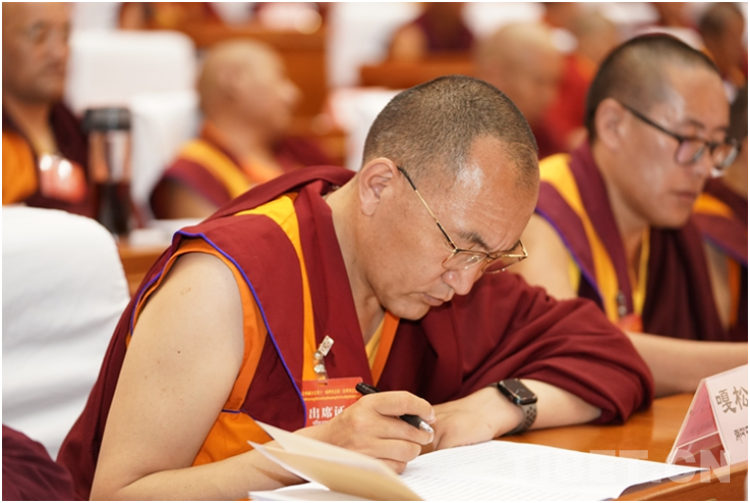 在安排部署下一步重點(diǎn)工作時,班禪表示,推動自我變革,開展教義教規(guī)闡釋。發(fā)揮藏傳佛教界人士在推進(jìn)中國化中的主體作用,推動沿著中國化方向健康傳承,引導(dǎo)藏傳佛教界人士切實(shí)增強(qiáng)自我變革的思想和行動自覺,以社會主義核心價值觀為引領(lǐng),在保持基本信仰、核心教義的前提下,促進(jìn)教義教規(guī)、管理制度、禮儀習(xí)俗、行為規(guī)范等方面逐步形成中國特色。實(shí)施藏傳佛教教義教規(guī)闡釋工程。引導(dǎo)藏傳佛教界對教義教規(guī)、藏傳佛教經(jīng)典選優(yōu)擇重、去粗取精、推陳出新,作出與中國國情、中華文化、中國特色社會主義相適應(yīng)的通俗易懂、與時俱進(jìn)地闡釋。引導(dǎo)藏傳佛教界人士在闡釋經(jīng)典、講經(jīng)說法、日常生活中學(xué)習(xí)使用國家通用語言文字,開展經(jīng)典翻譯、選編、注釋,挖掘教義思想中積極因素。爭做精進(jìn)修學(xué)、推進(jìn)藏傳佛教健康傳承的好僧尼,爭做守法遵規(guī)、弘揚(yáng)濟(jì)世利民優(yōu)良傳統(tǒng)的好僧尼,爭做立場堅定、堅決維護(hù)祖國統(tǒng)一和民族團(tuán)結(jié)的好僧尼。