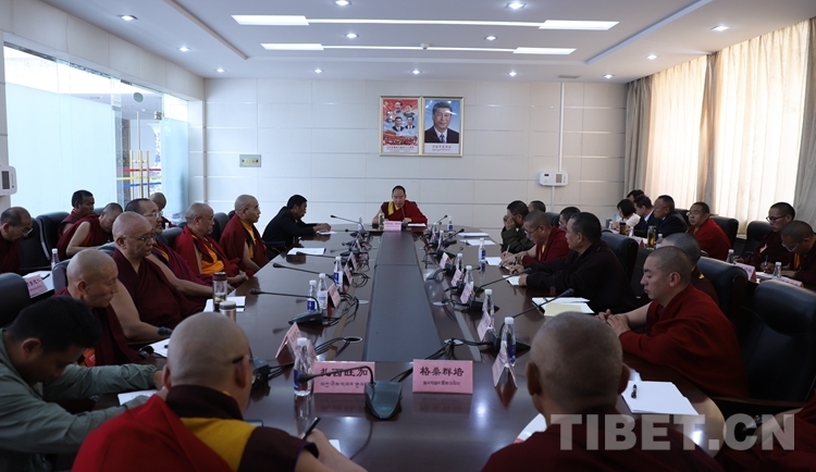會議審讀《第八屆藏傳佛教講經(jīng)闡釋論文集》,研討如何在保持基本信仰、核心教義的前提下,對藏傳佛教經(jīng)典作出選優(yōu)擇重、去粗取精、推陳出新的闡釋,適應(yīng)和服務(wù)社會發(fā)展需求、人民生活需要。
