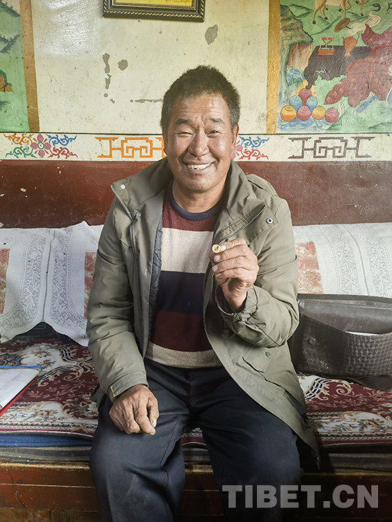 索杰醫(yī)生取出第三個包的時候,格外小心翼翼。我們因此也就更好奇,里面又是什么“寶藏”。“我1986年入黨,1997年當(dāng)村大隊的副隊長。2010年,鄉(xiāng)里在12個村的大隊長中,選兩名優(yōu)秀人員,我就是其中之一。”索杰醫(yī)生邊說,邊慢慢拿出一個盒子,打開盒蓋,把手在衣服角上抹抹,然后取出一枚金黃閃亮的毛主席像章?!爱?dāng)時我們縣一共去了20人,先到那曲市委黨校學(xué)習(xí)了8天,然后到北京和大連分別參觀學(xué)習(xí)7天。在北京,我去了毛主席紀(jì)念堂、天安門、長城、鳥巢、水立方。我在天安門廣場買了鮮花,到毛主席紀(jì)念堂門口時,先是有點緊張,因為那里站崗的軍人。我把鮮花放在一個統(tǒng)一的地方,瞻仰毛主席遺容時,我緊張的心情一下子沒有了,都變成了激動。”索杰醫(yī)生把手放在心臟的位置比劃著,“為了紀(jì)念毛主席,我就買了一枚毛主席像章。”