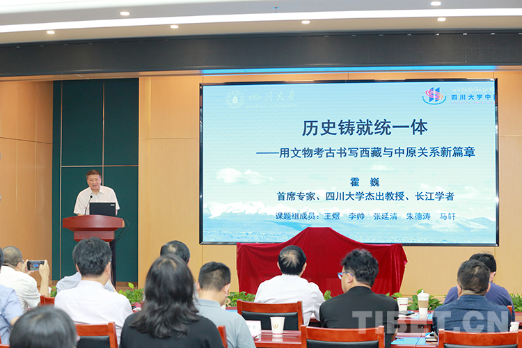 圖為《歷史鑄就統(tǒng)一體:考古與文物所見(jiàn)西藏和中原關(guān)系資料研究》主編霍巍發(fā)言 攝影:陳衛(wèi)國(guó)