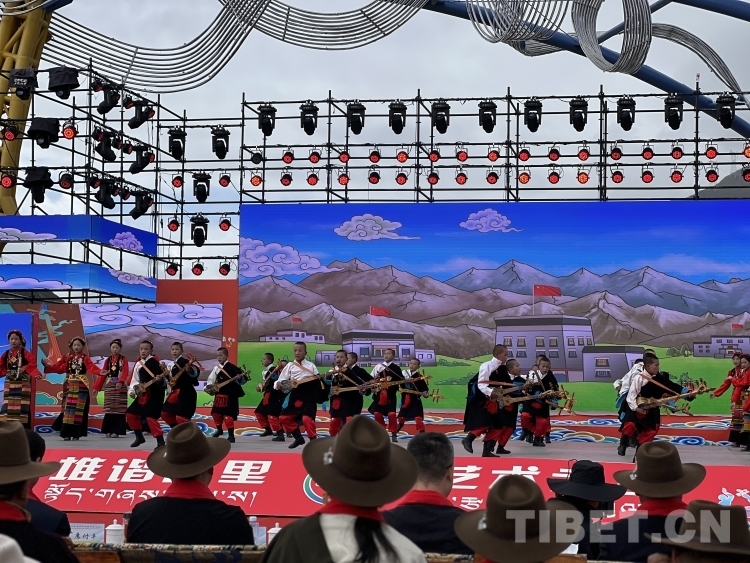 開幕式在莊嚴(yán)的國歌聲中拉開序幕。開幕式文藝演出聚焦“堆諧故里,藝術(shù)之鄉(xiāng)”,由拉孜縣藝術(shù)團、民間業(yè)余演出隊、九大藏戲隊、少兒藝術(shù)隊,芒普鄉(xiāng)、扎西崗鄉(xiāng)、柳鄉(xiāng)藝術(shù)隊演出藏戲、堆諧、諧欽(“諧”藏語意為歌舞,“欽”即盛況或隆重之意)、洛諧(定日縣為主的南部歌舞)、果諧(圓圈舞)以及區(qū)內(nèi)知名歌手演唱歌曲組成。整個演出融合傳統(tǒng)民族非遺文化與現(xiàn)代歌舞元素,演出內(nèi)容既富有傳統(tǒng)特色又極具時代魅力,充分展示了拉孜各族人民昂揚向上、團結(jié)奮進、開放包容的精神面貌。