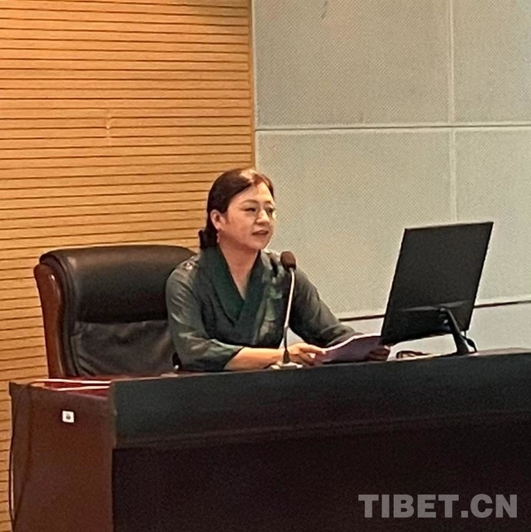 圖為青海省社會科學院藏學研究所副研究員罡拉卓瑪作主旨發(fā)言。攝影:鹿方舟