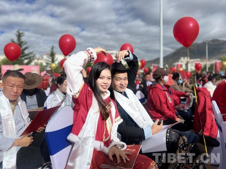 圖為民族團結(jié)模范夫妻現(xiàn)場證婚 攝影:德吉卓瑪