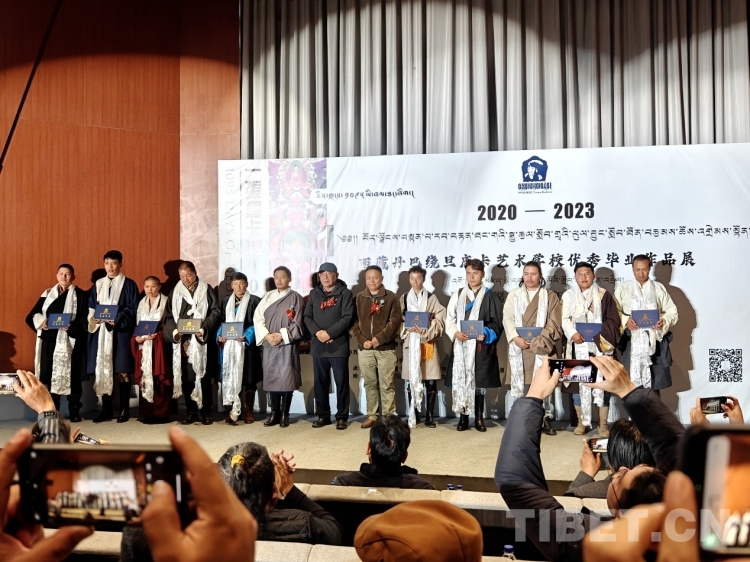 中國西藏網(wǎng)訊 10月27日,由西藏文化旅游創(chuàng)意園區(qū)管理委員會(huì)和西藏丹巴繞旦唐卡藝術(shù)中心聯(lián)合主辦的2020——2023西藏丹巴繞旦唐卡藝術(shù)學(xué)校優(yōu)秀畢業(yè)生作品展在拉薩開展。此次展覽以“一張?zhí)瓶ǖ?095天”為主題,寓意在畢業(yè)作品創(chuàng)作的1095個(gè)日夜中,西藏丹巴繞旦唐卡藝術(shù)學(xué)校畢業(yè)生們帶著自己的信念和親朋好友的期待,埋頭精進(jìn)、全力以赴展示長達(dá)八年至十多年豐碩的學(xué)習(xí)成果?,F(xiàn)場展示的39幅精品唐卡是繼承丹巴繞旦教授遺志最生動(dòng)的實(shí)踐成果,展示了傳統(tǒng)唐卡由家族傳承到社會(huì)化教育轉(zhuǎn)變的豐碩成果。
