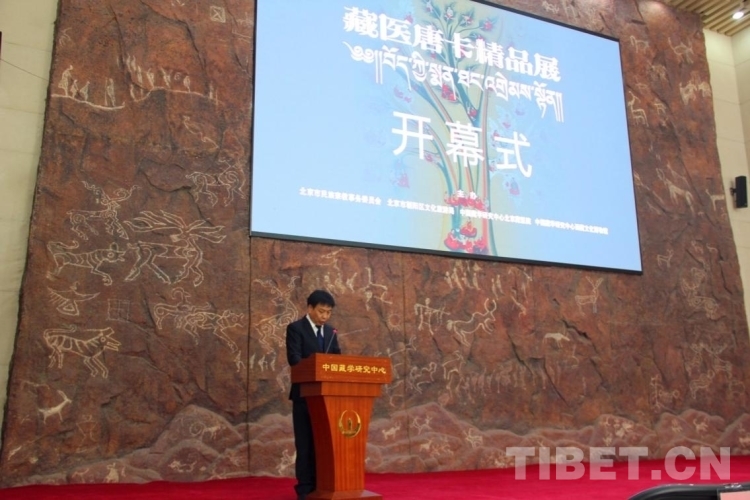 中國藏學研究中心北京藏醫(yī)院院長仲格嘉在開幕式致辭中介紹,起源和根植于中華民族的藏醫(yī)藥,是我國中醫(yī)藥學寶庫中的一顆璀璨明珠。藏醫(yī)藥迄今已有3800多年的發(fā)展歷史,在藏醫(yī)學史上形成了別出心裁的藏醫(yī)唐卡。藏醫(yī)唐卡以浩瀚畫卷,形象生動、系統(tǒng)地描繪了藏醫(yī)藥學的體系框架、基礎理論、臨床實踐技法,以及藏醫(yī)史、醫(yī)德醫(yī)風、養(yǎng)生保健等內容。除了藏醫(yī)教學的實用價值外,藏醫(yī)唐卡還有很高的民族學、歷史學、宗教學及美學價值,其卷幅之多、內容之廣博、構思之巧妙、畫工之精湛,堪稱學習藏醫(yī)藥學的百科全書。