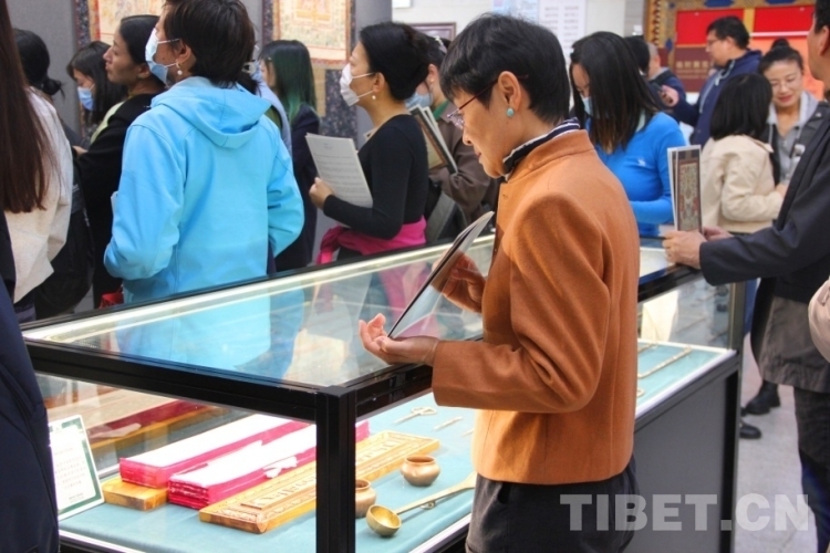 圖為參展觀眾觀看櫥窗藏醫(yī)藥相關展品 攝影:王茜