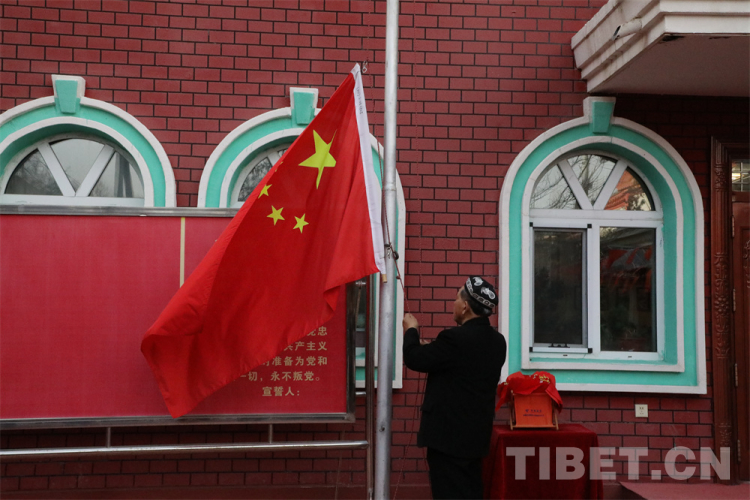 中國西藏網(wǎng)訊 日常的清晨,走在哈爾墩社區(qū)的街道上,推開街道拐角的一處紅色大門,就能看到一個平靜整潔的小院。沙勒克江·依明老人和他的老伴早早地站在小院中間,微笑著迎接走訪團(tuán)隊的到來。他們的右手邊是一根锃亮的銀色升旗桿,旗桿上已經(jīng)升起的五星紅旗在清晨的微風(fēng)里輕輕舒展開來。