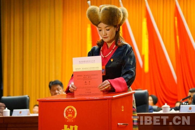圖為拉薩市第十二屆人大代表投下莊嚴神圣的選票 攝影:旦曲