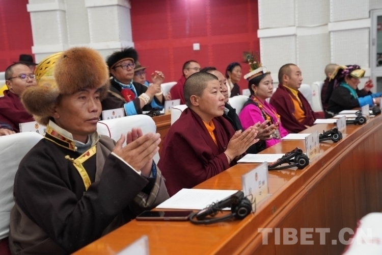 圖為開幕會(huì)現(xiàn)場委員在認(rèn)真聽取各項(xiàng)報(bào)告 攝影:次旦拉姆