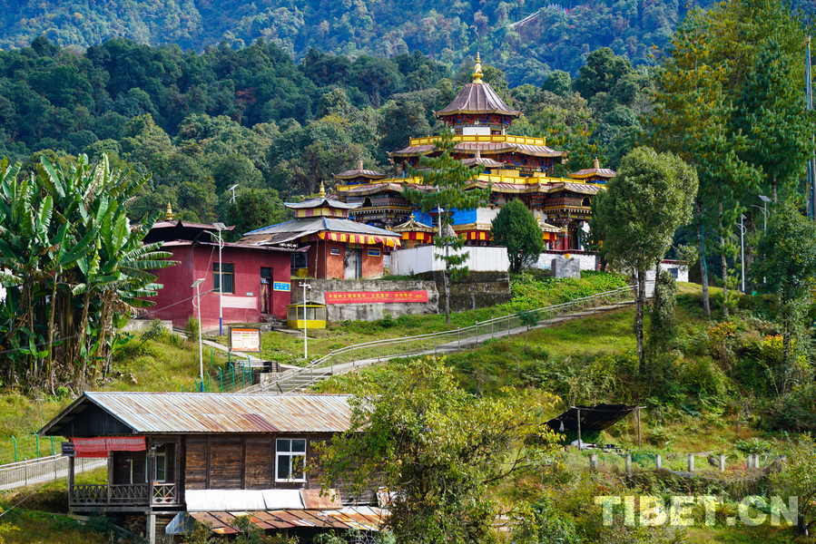 資料圖:位于墨脫縣的仁青崩寺被參天大樹環(huán)繞