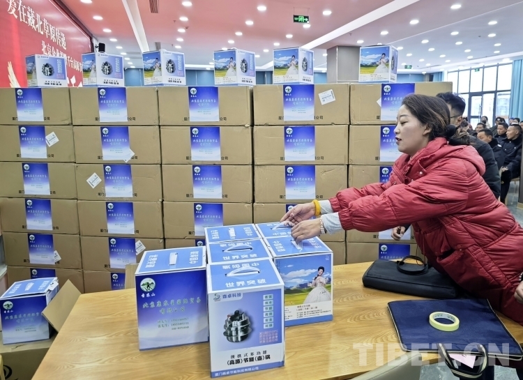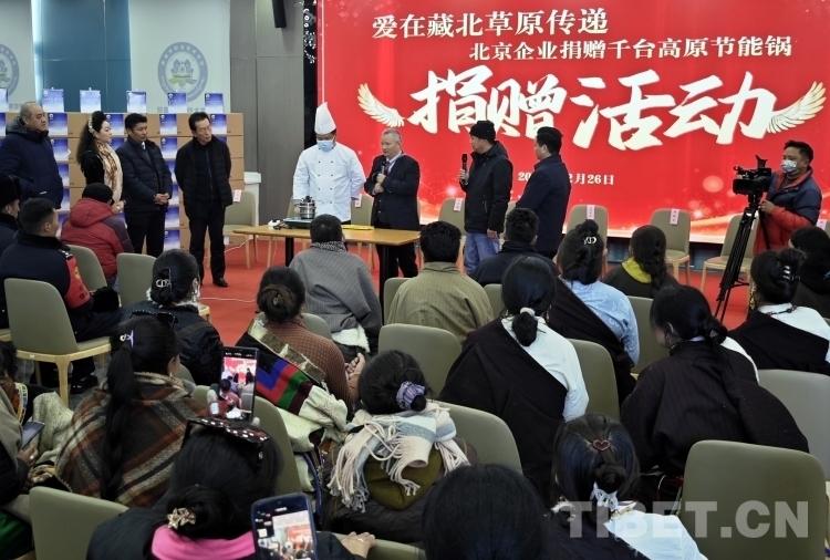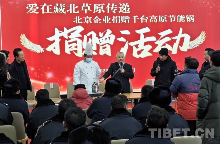 隆冬時(shí)節(jié),藏北大地千里雪飄,寒氣襲人,但在那曲市職業(yè)學(xué)校實(shí)訓(xùn)樓里卻熱鬧非凡。室內(nèi),大型電子屏顯示著“愛(ài)在藏北草原傳遞——北京企業(yè)捐贈(zèng)千臺(tái)高原節(jié)能鍋捐贈(zèng)活動(dòng)”的字幕。那曲市近百名農(nóng)牧民群眾和環(huán)衛(wèi)工人、鐵路護(hù)路隊(duì)員代表相聚這里接受捐贈(zèng)。