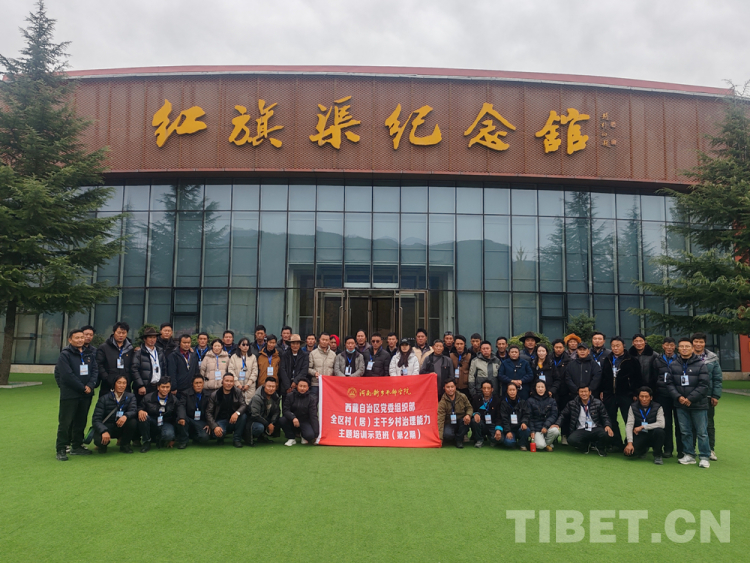 圖為西藏自治區(qū)黨委組織部全區(qū)村(居)主干鄉(xiāng)村治理能力主題培訓(xùn)示范班走進紅旗渠紀念館學(xué)員合影