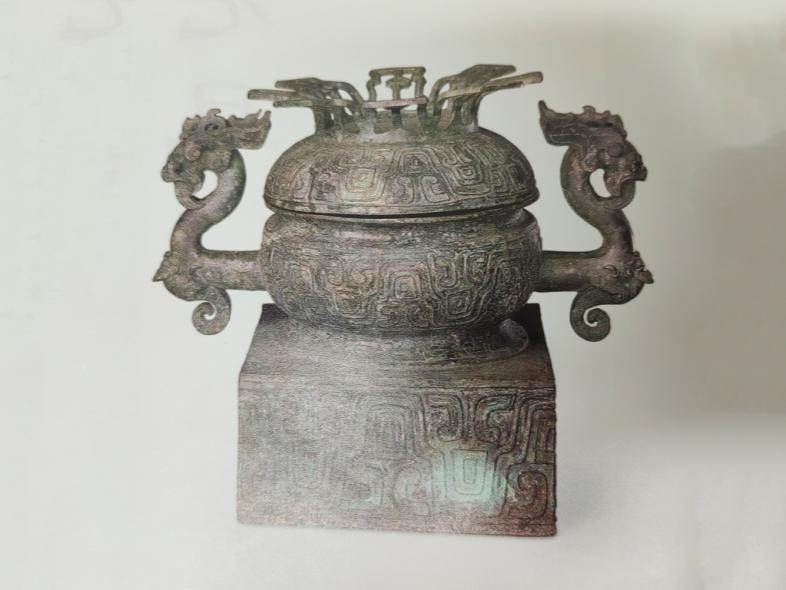 圖為青銅龍耳簋 翻拍自《故宮日歷》