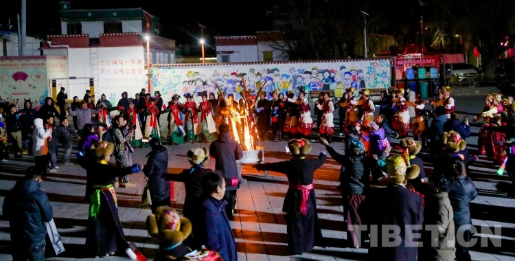 “村晚”演出結(jié)束后,演職人員和觀眾們前往社區(qū)廣場(chǎng)圍著篝火,跳起了歡快的果諧?,F(xiàn)場(chǎng),來(lái)自全國(guó)各地的游客熱情參與“村晚”活動(dòng)中,勾畫(huà)出民族團(tuán)結(jié)的美好畫(huà)面。