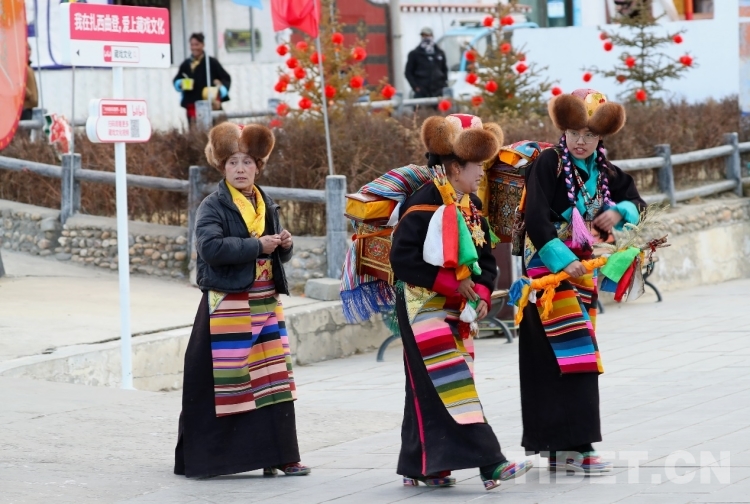 圖為村民早早前往活動(dòng)現(xiàn)場(chǎng) 攝影:次仁龍布