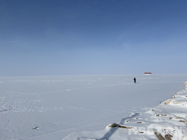 青海湖是我國(guó)面積最大的內(nèi)陸湖泊,湖岸線長(zhǎng)約360公里。落雪后的湖面更是白茫茫一片,極目遠(yuǎn)眺,水與天相接。天地間十分安靜,只余不太溫柔的風(fēng)聲在耳側(cè)呼嘯而過(guò)。偶爾有游人在冰面走動(dòng),在白色的背景下顯得格外醒目。我們的無(wú)人機(jī)好像一只勇敢的沙鷗,翱翔在水天之間。(中國(guó)西藏網(wǎng) 文/李一凡 龍真多吉 張萌萌)