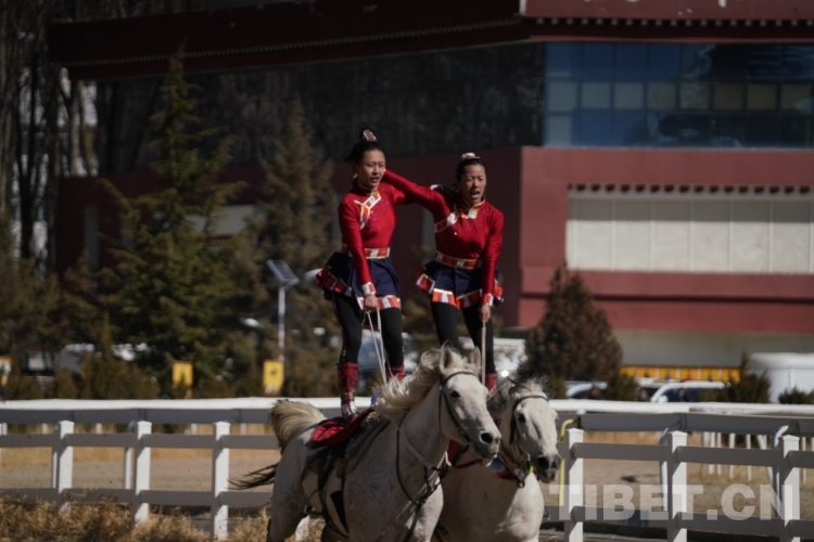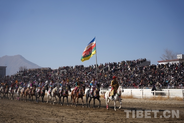 中國西藏網(wǎng)訊 2月12日上午,藏歷木龍新年初三民族傳統(tǒng)馬術(shù)表演暨民族賽馬活動(dòng)在拉薩賽馬場舉行。此次活動(dòng)包括民族賽馬和馬術(shù)表演。其中,民族賽馬包括3000米、5000米、8000米三個(gè)項(xiàng)目,馬術(shù)表演共有18個(gè)大項(xiàng)、20余個(gè)小項(xiàng)。馬術(shù)表演與民族賽馬穿插進(jìn)行。現(xiàn)場約8000名觀眾共同欣賞了精彩的馬術(shù)表演,觀看了激烈的速度賽馬,共慶佳節(jié)。