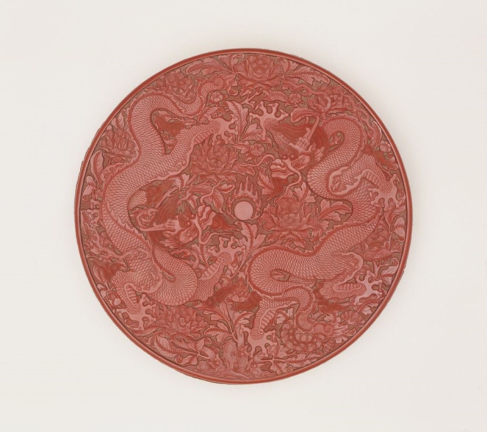 圖為剔紅雙龍牡丹紋圓盒 圖片來(lái)源:故宮博物院