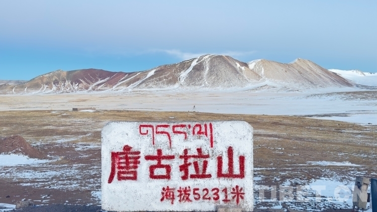 標記唐古拉山海拔5231米的石碑。陳明 攝