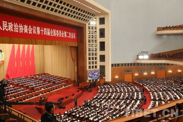 圖為全國政協(xié)十四屆二次會議第二次全體會議現(xiàn)場 攝影:桑吉