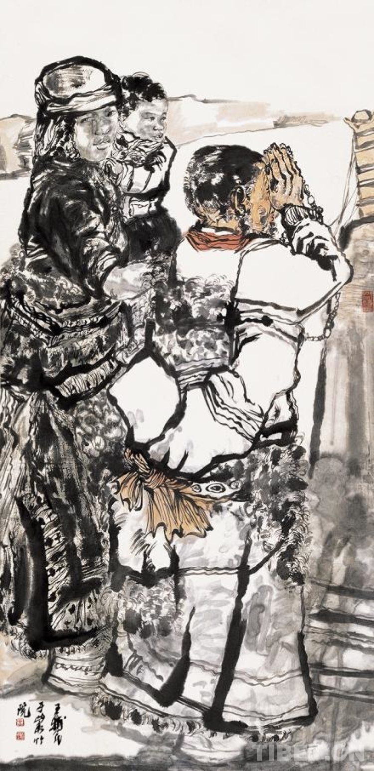 從第九屆全國美術作品展開始,王輔民主要以藏族題材進行創(chuàng)作,這一主題至今仍是他不斷深入和拓展的方向。王輔民通過自己的努力和實踐,成功地將藏族群眾生活融入中國畫的水墨表現(xiàn)中,展現(xiàn)了他對藝術的執(zhí)著追求和對藏文化的深厚情感。