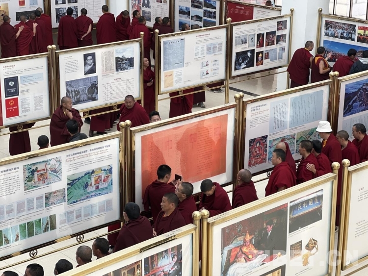 圖為經(jīng)師學(xué)員參觀藏傳佛教活佛轉(zhuǎn)世專(zhuān)題展 攝影:德吉卓瑪
