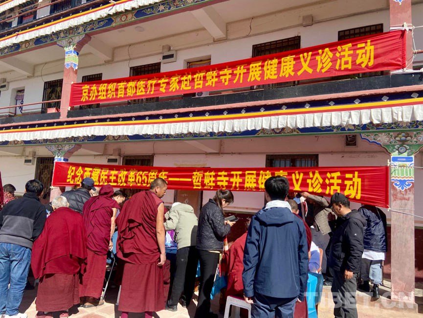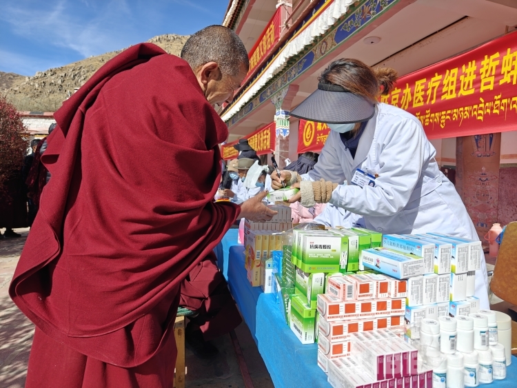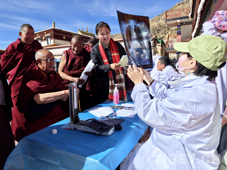 中國西藏網(wǎng)訊 “收到今天有北京醫(yī)療專家過來義診的消息,我一大早就過來了。身體平時沒什么大的毛病,就想著借此機會檢查一下,畢竟年紀大了?!?6歲的哲蚌寺僧人加參高興地說。為了讓哲蚌寺僧人和周邊民眾在家門口就能享受到優(yōu)質的醫(yī)療服務,傳播健康生活理念,提高健康意識,3月29日,西藏自治區(qū)人民政府駐北京辦事處(以下簡稱:京辦)組織北京11家重點醫(yī)院的12名醫(yī)療專家走進位于拉薩市城西的哲蚌寺,開展“踔厲奮發(fā)擔使命 送醫(yī)進藏暖民心”義診活動,得到僧人和群眾的一致稱贊。